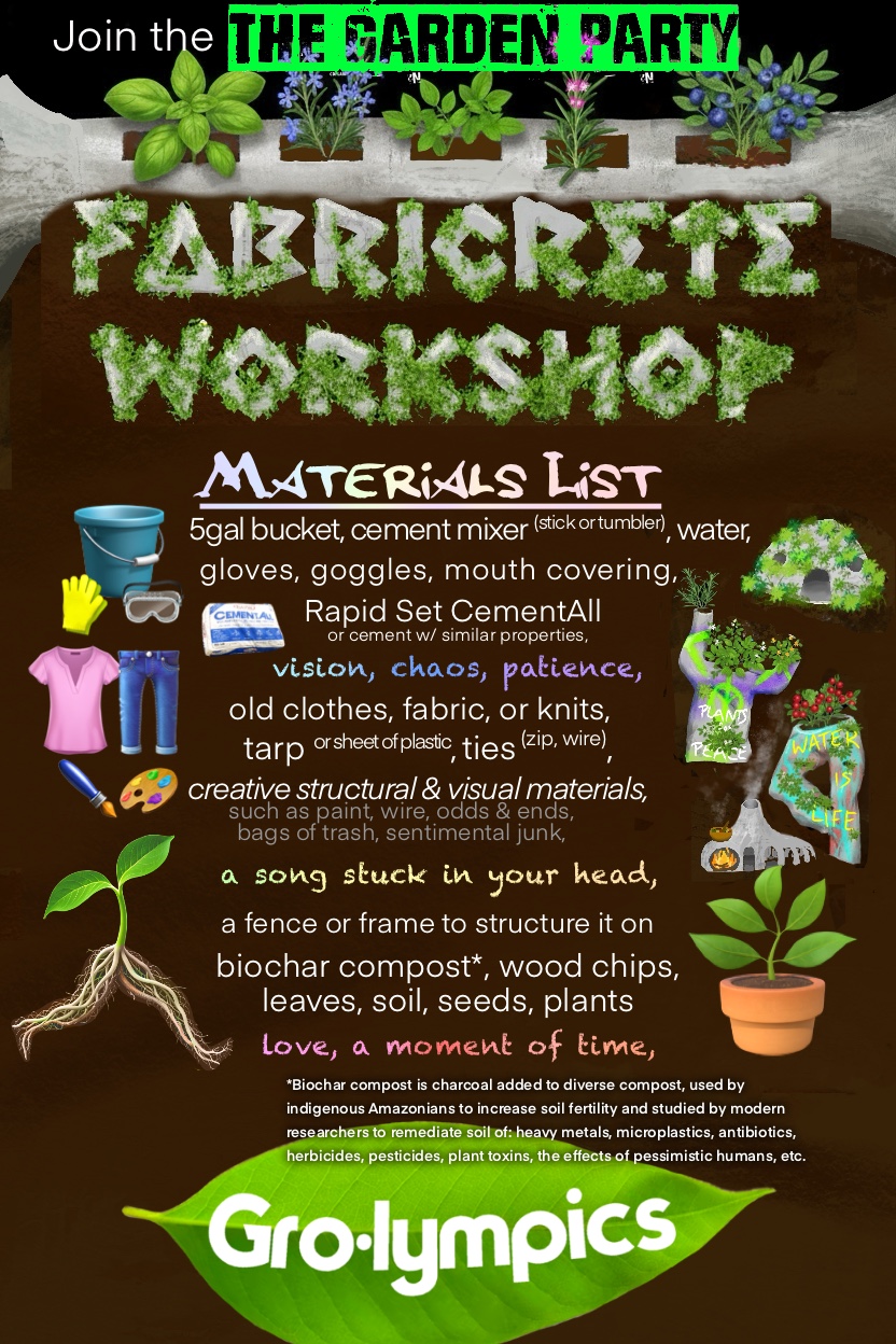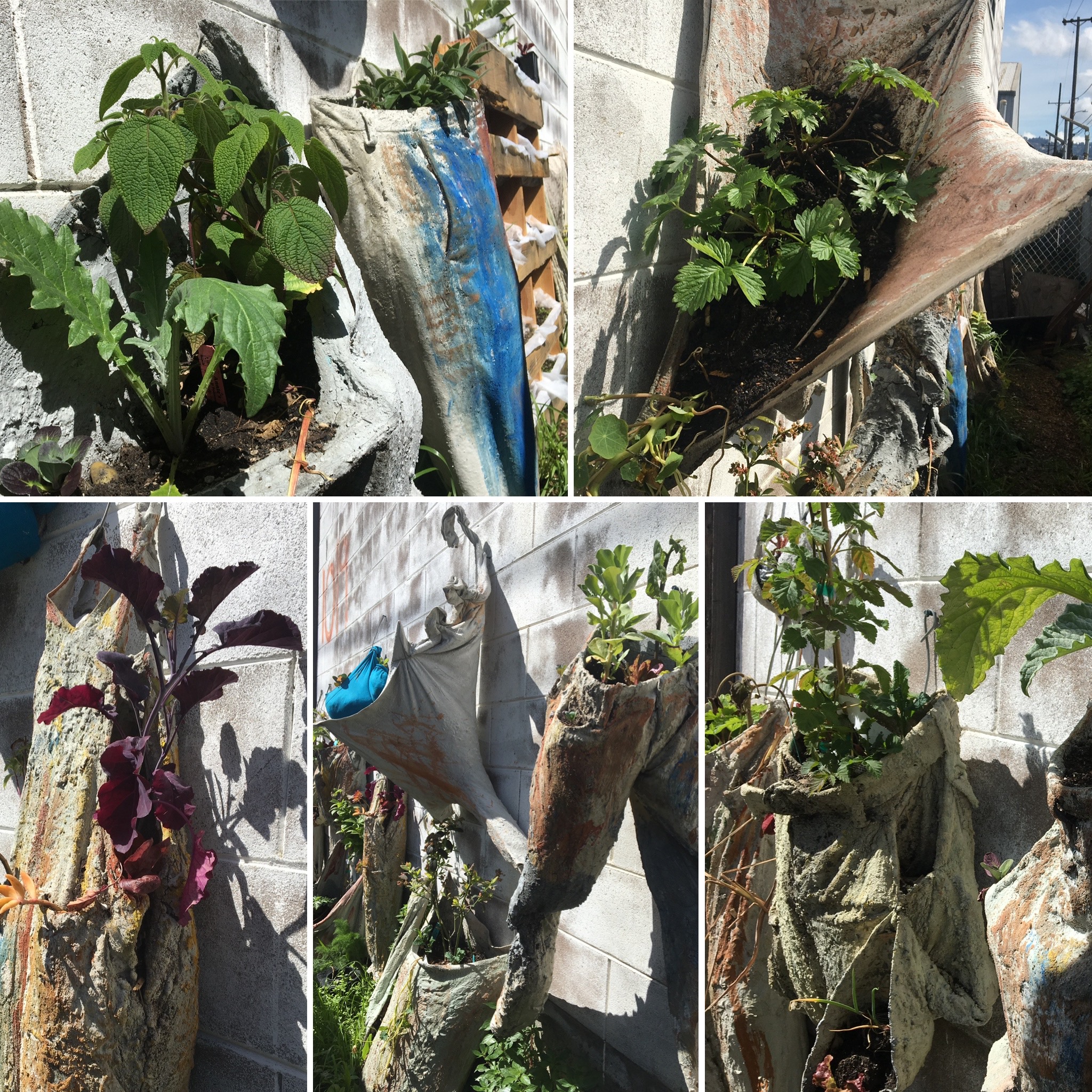 “Dancing Plants in Pants” test garden at All Power Labs, made in 2019 over a couple of workshops- first was led by Michael Collins, with Olivia and me/Leela in attendance. Second was led by me, with some friends from All Power Labs.