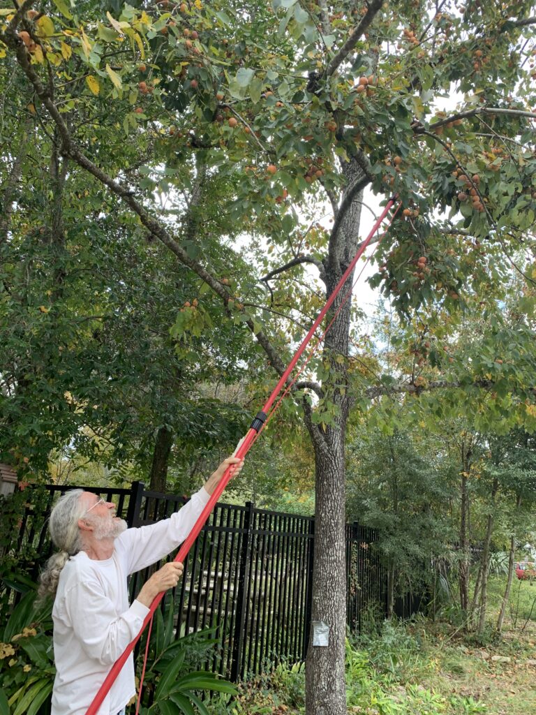 The tree is located in Dreamer’s Garden, a city of Gainesville community garden located at the intersection of NW 10th Ave and NW 4th St. There’s easy parking across the street in the Earth Pets plaza (you can stop in at the store to pick up some eco-friendly treats for your furry companions while visiting the persimmon tree.)