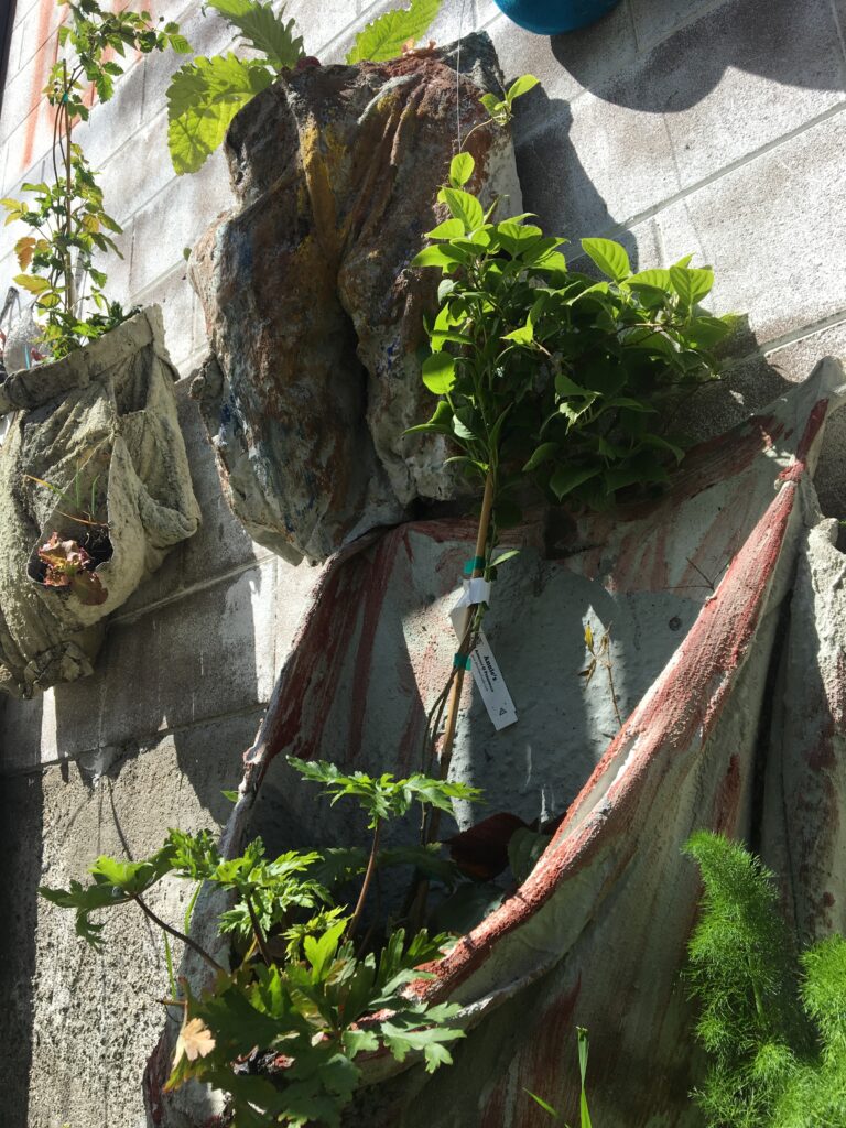 The dry, sun-beaten location and difficulty to irrigate the irregular structures devastated this garden. Great experiment, though!
